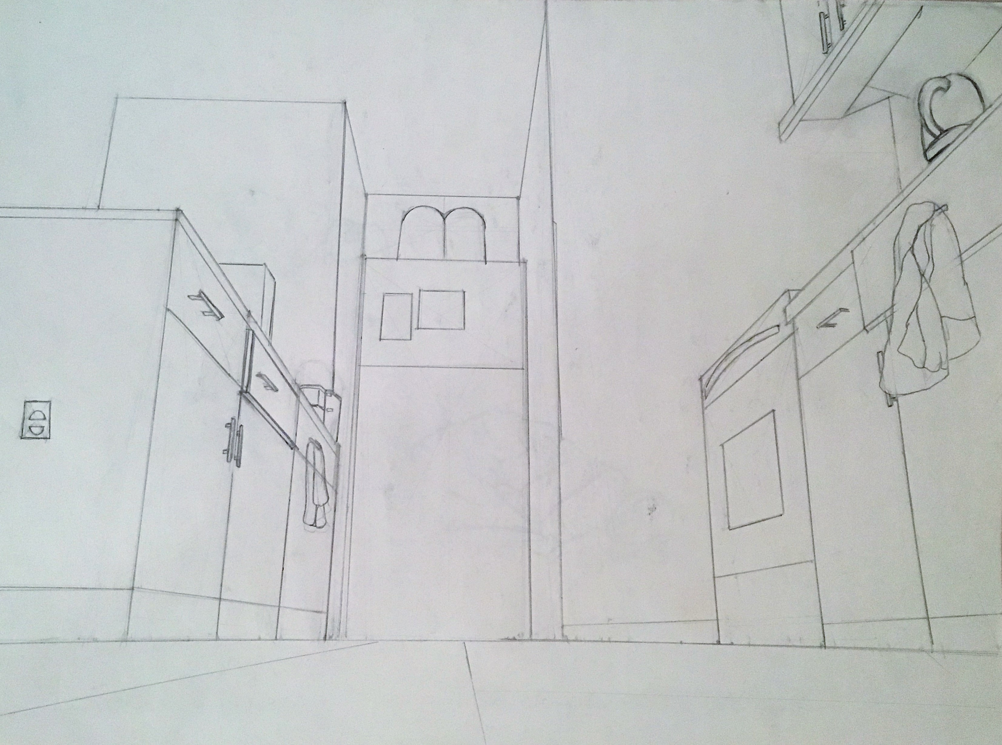 Kitchen drawn using 3-point perspective.